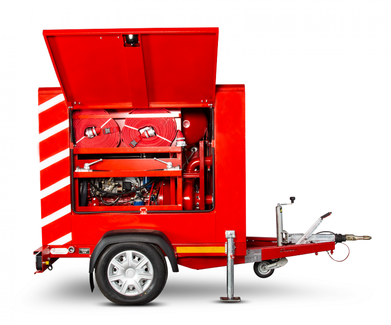 High performance pump connected to a suitable diesel engine mounted on a trailer with a direct elastic coupling. By directing the exhaust gas to the suction system, the pump has the ability to pump the water to be sucked into the suction pipe of the pump without filling water easily and quickly. Suction hose, discharge hose, water spray lance, foam mixer (optional) fuel tank, engine start and control panel, batteries are provided with the pump and all equipments are placed on the trailer with two tires and are ready to work.